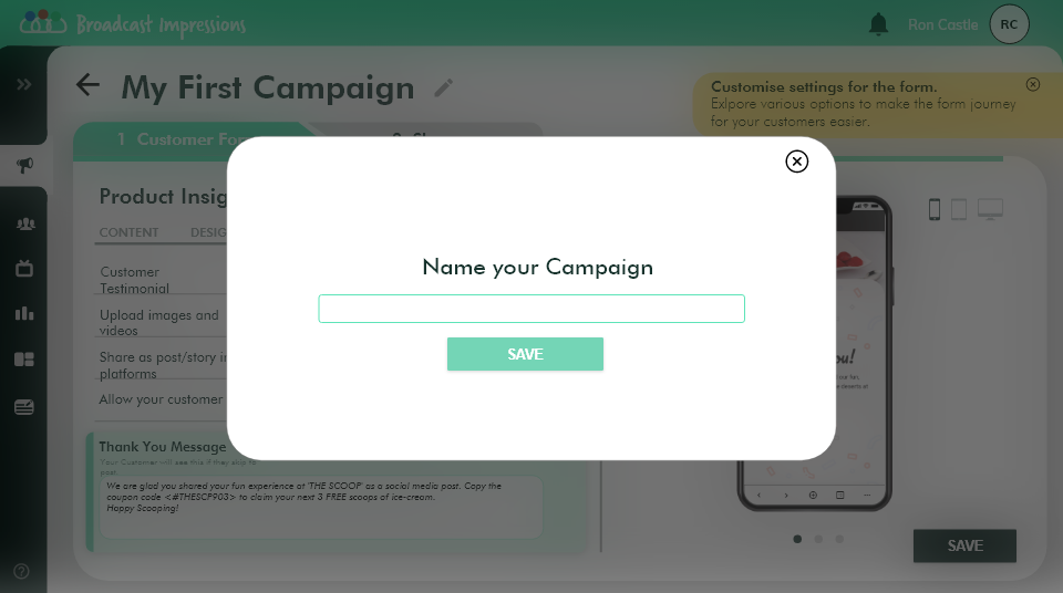Once you are ready you can name and save your campaign.