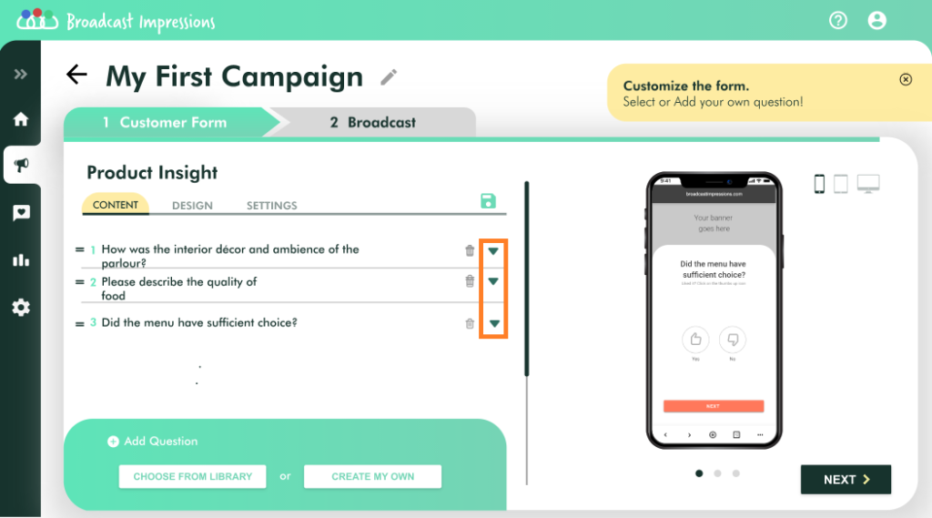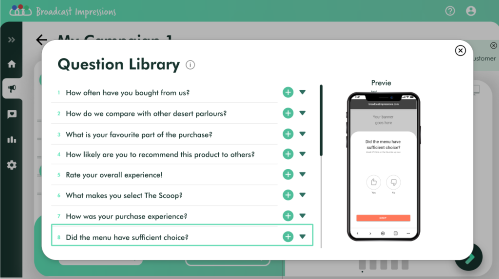 A pop up with a list of questions related to your business will be available for you to choose and customize.