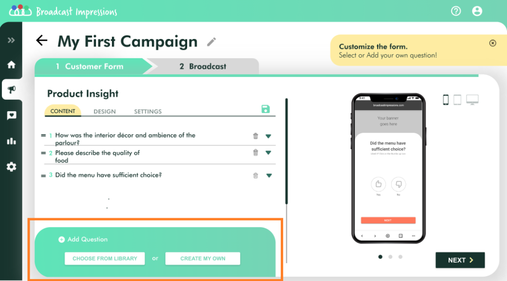 Click on the Next Button to save and publish your campaign.